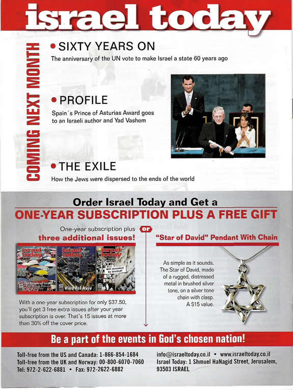 To read Israel Today online log onto: http://www.israeltoday.co.il "