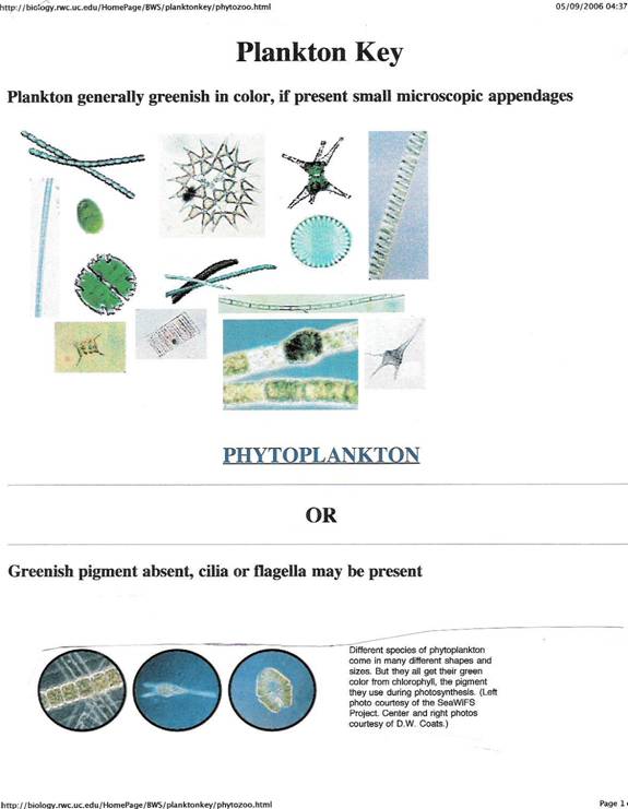 Phytoplankton grow abundantly in oceans around the world, and they exert a worldwide influence on the world’s climate. That is why phytoplankton are on the top of the list for oceanographers and Earth scientists for study around the world. Phytoplankton require the same basic ingredients land plants do, sunlight, water, and nutrients. C02 is one of those ingredients. Because sunlight is strongest near the surface of the sea phytoplankton remain either at the surface or near it. They contain chlorophyll, which makes them green. It is used for photosynthesis, converting C02 and water into sugars, carbohydrates, i.e. plant food. They also require iron and other nutrients to survive. When surface waters are cold, the deeper waters are allowed to rise, bringing nutrients upward to the surface. This stimulates rapid phytoplankton growth. When surface waters are warm, this upwelling is prevented, and the phytoplankton population drops, as they starve. Individual phytoplankton live only a couple days at the most, so when they die on a regular basis, each one sinks to the bottom. Over long steady periods of time the ocean has proven to be a huge sink for atmospheric carbon dioxide. About 90 percent of the world’s total carbon content has settled to the bottom of the ocean, mainly in the form of biomass from these dying phytoplankton. Another form of carbon storage is via the steady deposits of CaC03, calcium carbonate, which we will look at soon. Phytoplankton use carbon dioxide for photosynthesis. The larger the world’s phytoplankton population, the more C02 is pulled from the atmosphere and locked on the ocean’s floor. Any given population of phytoplankton can double its population on the order of once a day—if the conditions are right. They respond to conditions in their environment very rapidly. The health of the oceans is essential for this natural C02 scrubber to work at peak efficiency. [For a full description see http://earthobservatory.nasa.gov/Library/Phytoplankton/ ]